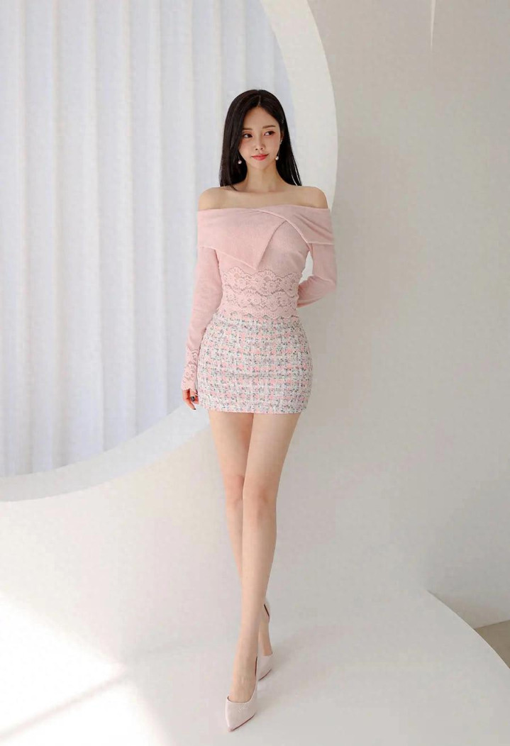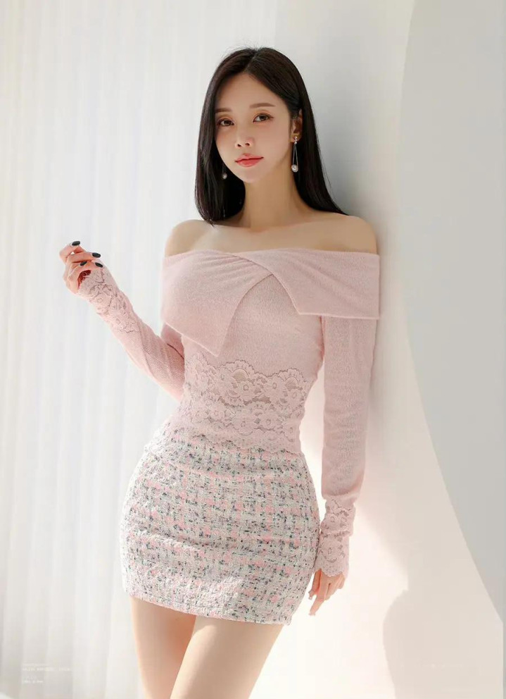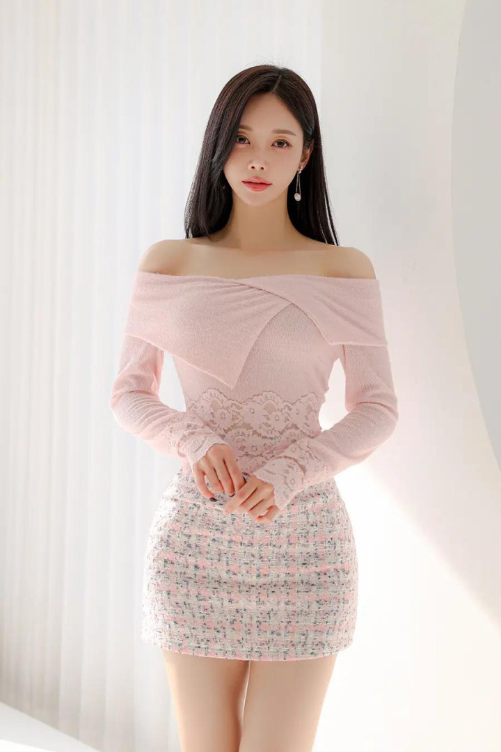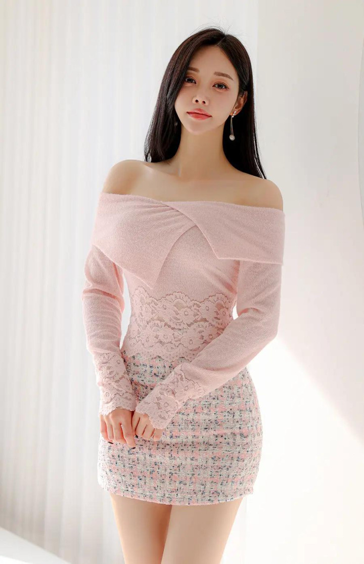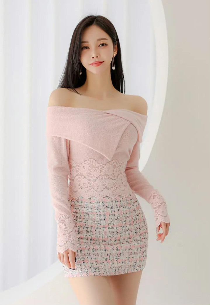 甜柔轻熟蕾丝风把粉调软甜和蕾丝粗花肌理的精致感揉得又嗲又高级